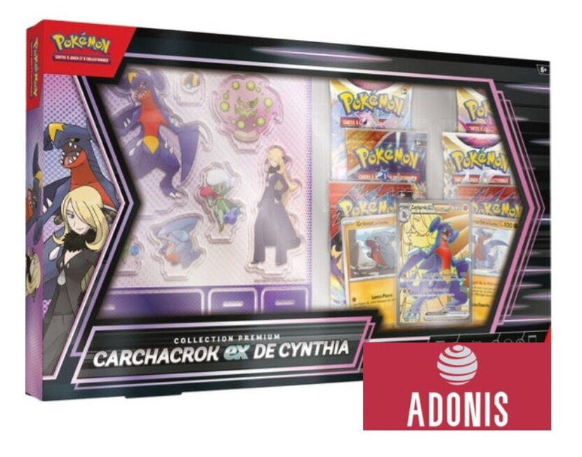 - 1 carte promo brillante entièrement illustrée de Carchacrok-ex de Cynthia ;